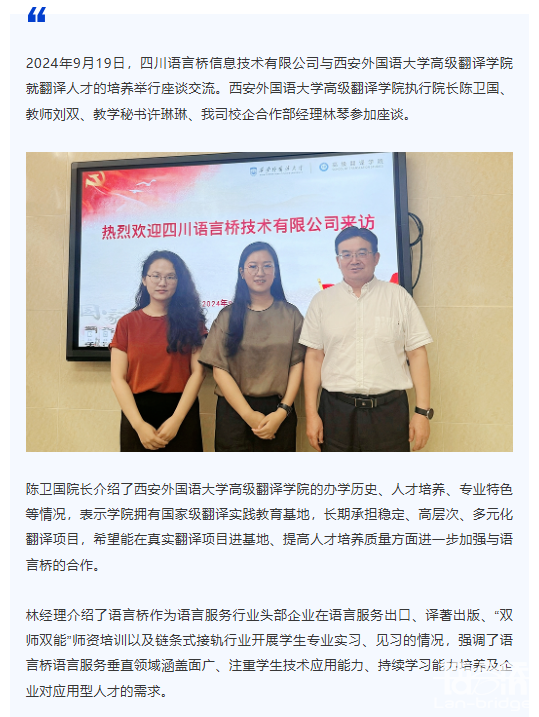 深化翻譯教育合作:西安外國語大學與語言橋開展座談交流