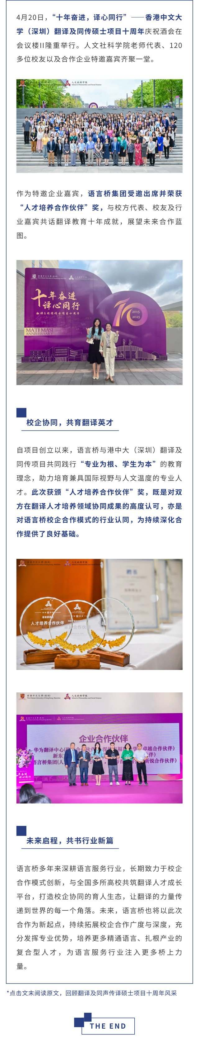 語言橋集團榮膺港中大(深圳)“人才培養合作伙伴”獎